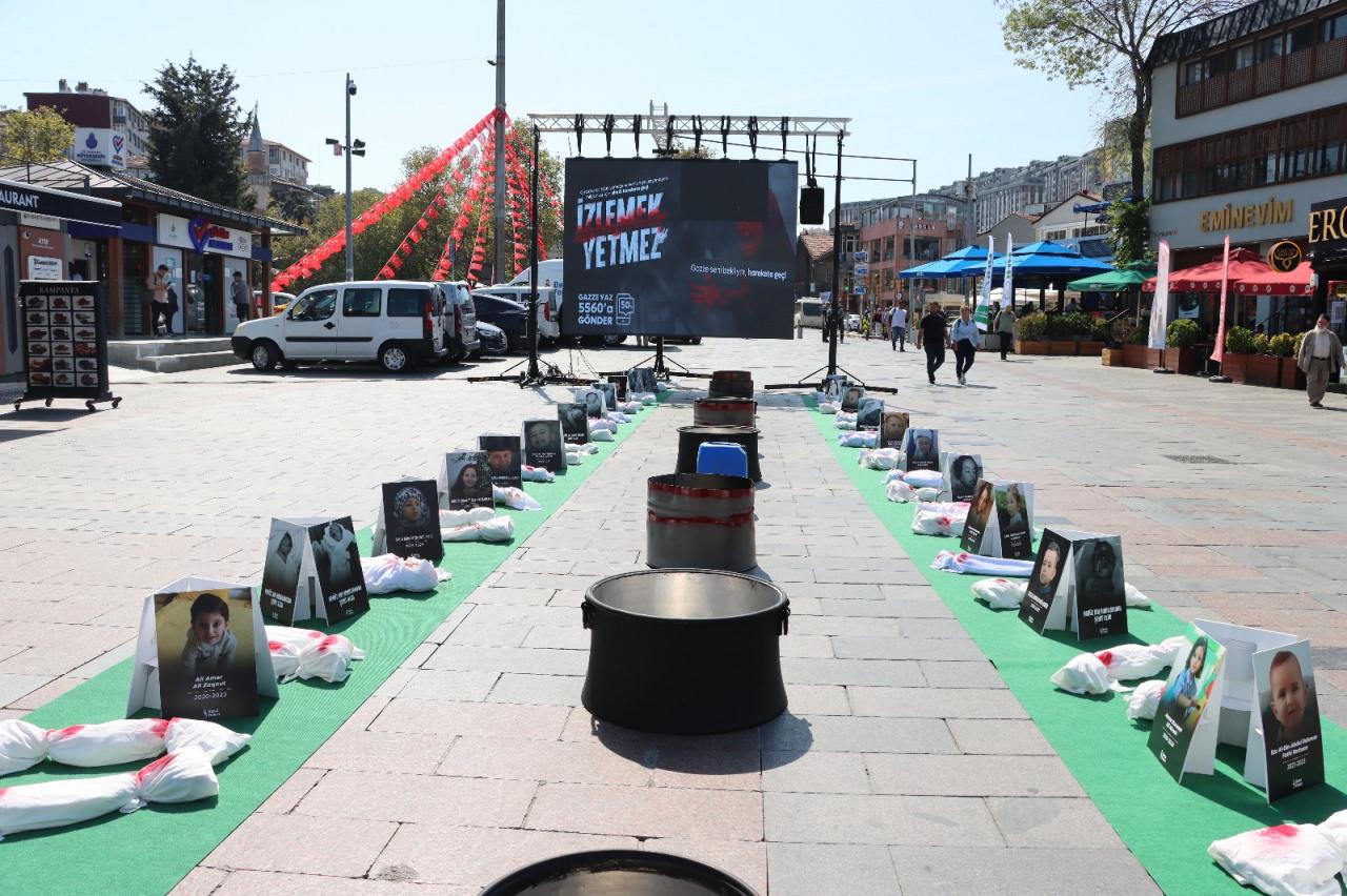 İsrail’in aylardır süren hücumlarının neden olduğu yıkım konusunda farkındalık oluşturmak maksadıyla Eyüpsultan Meydanı’nda düzenlenen aktiflikte iştirakçiler, Gazze’deki hayat şartlarını birebir deneyimleme fırsatı buluyor.