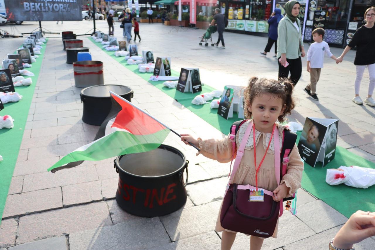 Yaşar, “İzlemek Yetmez” başlığı altında “Küçük Kefenler, Büyük Sessizlik” Standı’nı İstanbullularla buluşturduklarını belirterek, “Sergimizde Gazze’de şehit olan, şimdi ismi konulmamış ve yaşına girmemiş çocuklara ithafen bir tertip yapıyoruz. Yeniden stant alanımızda farklı etkinliklerimiz de var. Sanal gerçeklik gözlüğüyle güya beşerler, Gazze’de su yahut yemek sırasında yemek alıyorlarmış üzere bir hissiyatı deneyimlemiş oluyor.” tabirlerini kullandı.