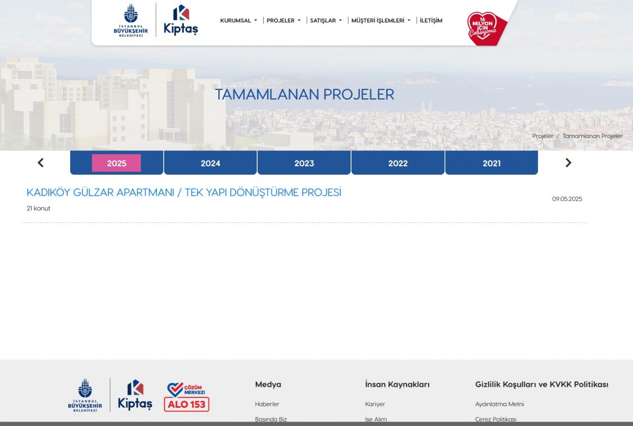 KİPTAŞ’ın tamamlanmış projeler hanesindeki tek giriş, “Kadıköy Gülzar Apartmanı / Tek Yapı Dönüştürme Projesi.”