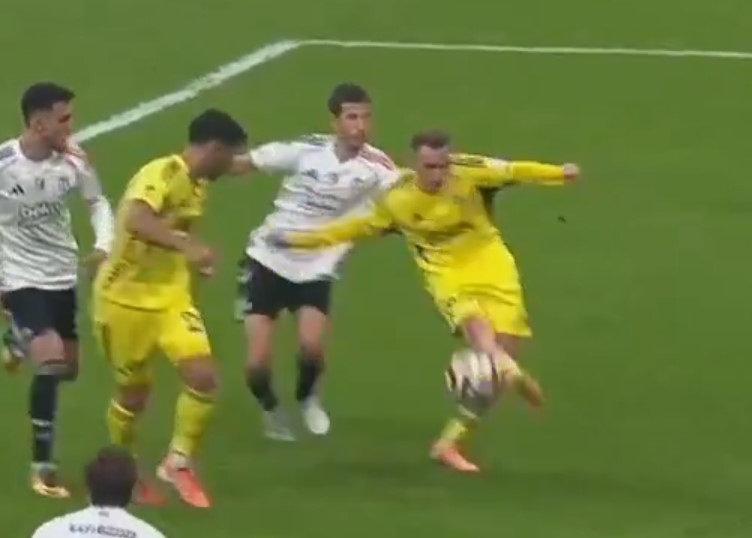 Maçın uzatma dakikalarında sol kanattan ceza alanına giren Jhon Duran, Gökhan Sazdağı’nın müdahalesiyle yerde kaldı. Hakem oyunu devam ettirdi. Fenerbahçe cephesi, bu konumda penaltı bekledi.