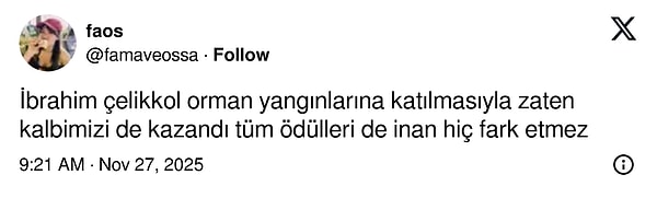 Geçmiş yıllarda hem Türk oyuncuların hem de dünya çapında tanınan pek çok ismin bu sahnede ödül aldığı öğrenilirken artık bu listeye, “Uluslararası En Uygun Erkek Oyuncu” unvanıyla İbrahim Çelikkol da eklendi.
