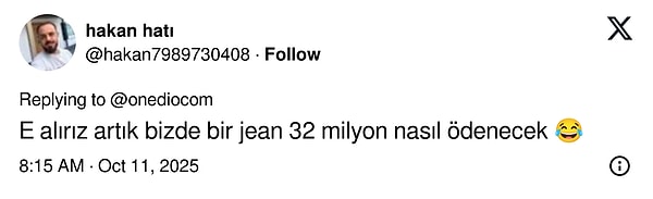 Reklam mutabakatlarında kaşelerin yüksek olduğu bilinen bir durum lakin X kullanıcıları haberi görünce yeniden de şoke oldu. 32 milyon TL’ye yapılan muahedeyi duyanlar “Paraya bak sanırsın markaya ortak oldu.” formunda yorumlar yaptı. Siz ne düşünüyorsunuz? Yorumlarda buluşalım!
