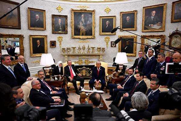 Beyaz Saray’da 2 saat 20 dakika süren görüşmenin sonrasında, kapıda Cumhurbaşkanı Erdoğan ile bir mühlet daha sohbet eden Trump, tokalaşmasının akabinde aracına binen Erdoğan’ı el sallayarak uğurladı.