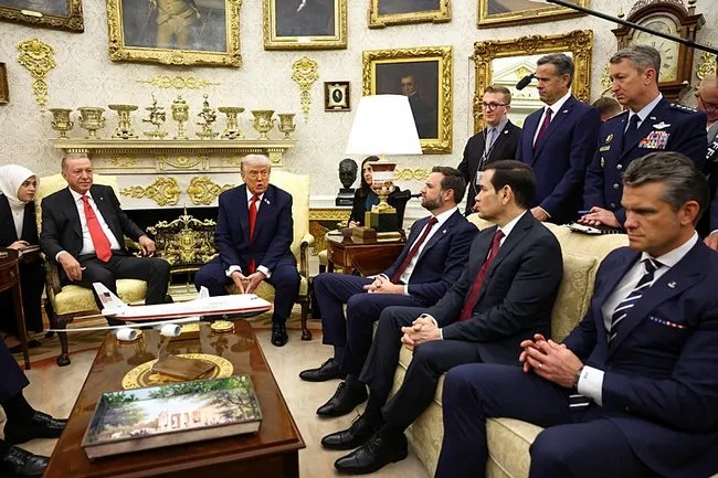 Cumhurbaşkanı Erdoğan, “F-16 ve F-35 konusunu etraflıca görüşeceğiz. ABD ile ikili bağlarda gerek Trump’ın 1. periyodunda gerekse 2. periyodunda farklı bir süreci yaşıyoruz. Birlikte el ele bölgedeki sorunları aşacağımıza inanıyorum.” açıklamasını yaptı.