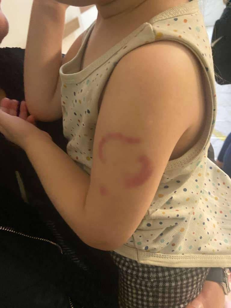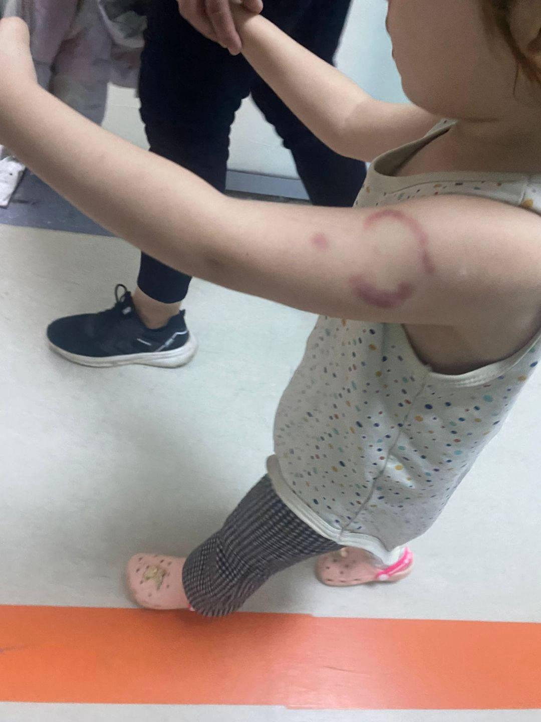 Okulda uyuduğu için öğretmeni tarafından kolunun ısırıldığını ve canının acıdığını söyleyen çocuk, gözyaşlarına hakim olamadı.