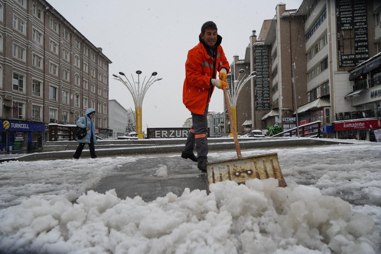 Kış turizm merkezi Erzurum’da gece başlayan ve sabaha kadar devam eden kar yağışı, vilayet merkezini beyaz örtüyle kapladı.