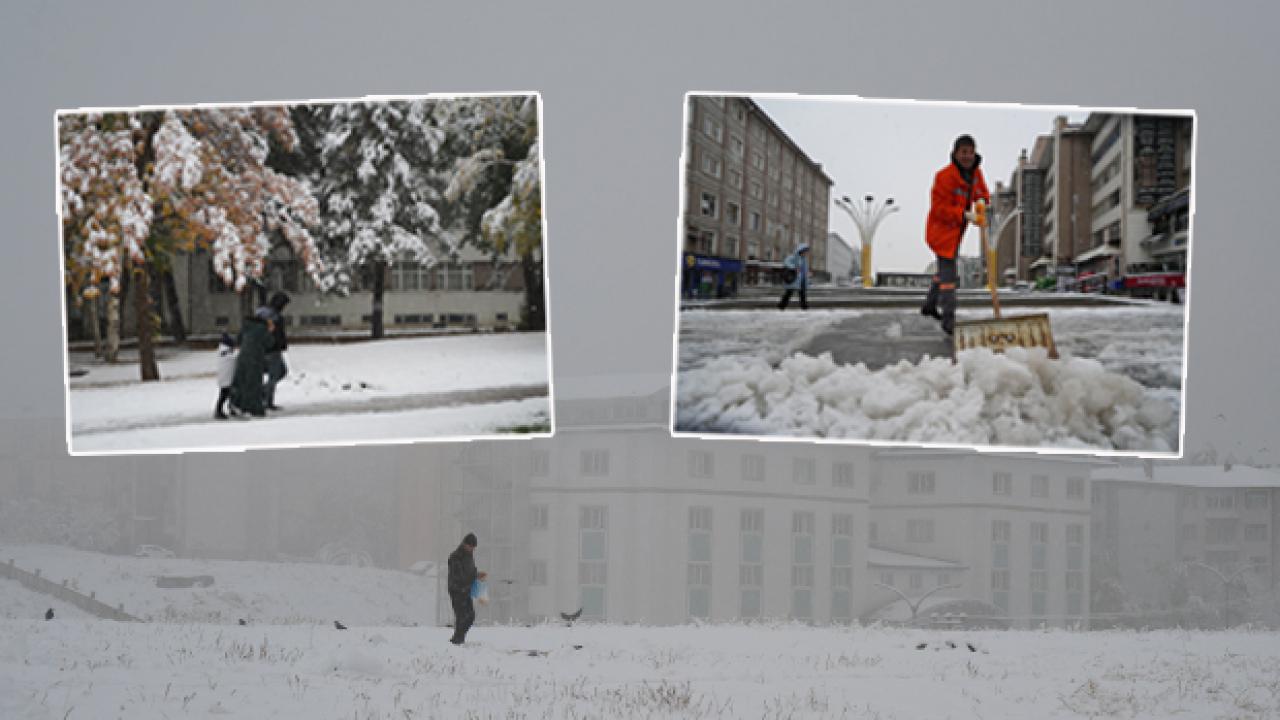 Ekim ayı ortasında yağan kar, vatandaşları şaşırttı. Sabah iş yerlerine kışlık kıyafetleriyle giden vatandaşlar, araçlarının üzerinde ve iş yerlerinin önünde biriken karları temizledi.