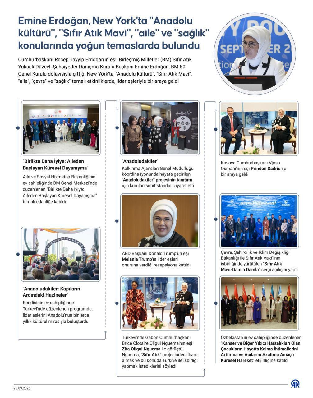 Cumhurbaşkanı Recep Tayyip Erdoğan’ın, BM 80. Genel Kurulu kapsamında ABD’nin New York kentine gerçekleştirdiği resmi temaslarına eşlik eden Emine Erdoğan, önder eşleri, memleketler arası kuruluşların üst seviye temsilcileri ve yabancı bakanların yer aldığı bir dizi aktifliğe katıldı.