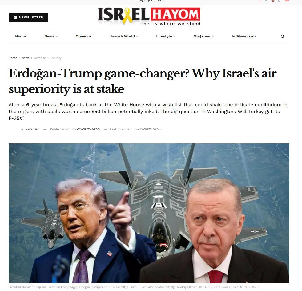 Başkan Erdoğan’ın ABD’li mevkidaşı Trump’la görüşmesi İsrail’de yankı buldu. İsrail kamuoyu, Türkiye’nin F-35 savaş uçaklarını satın alması durumunda İsrail’in bölgedeki hava üstünlüğünü kaybedeceğini söyledi.