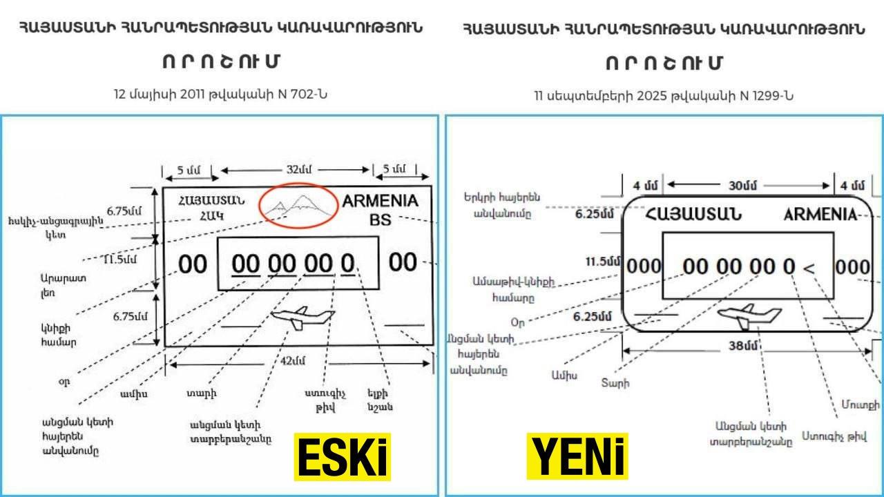 Ermenistan pasaportlarına basılan hudut damgalarında Ağrı Dağı (Ararat) artık yer almayacak.