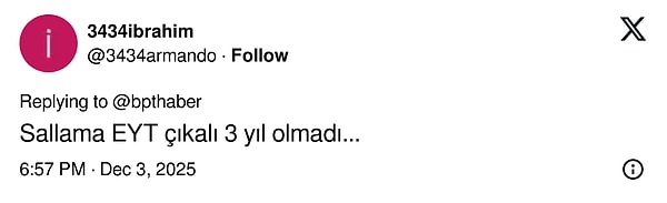 EYT’nin sırf 3 sene evvel çıktığını bilen kullanıcılar, Esmersoy’la kötü dalga geçti.
