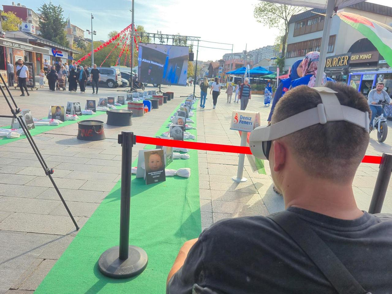 Gerçek imajlar ve tanıklıklarla desteklenen VR tecrübesi, iştirakçilere Gazze’de yaşananları sanal gerçeklik yoluyla hissettirirken, “Küçük Kefenler Sergisi” ise savaşın çocuklar üzerindeki yıkıcı tesirini gözler önüne seriyor.