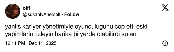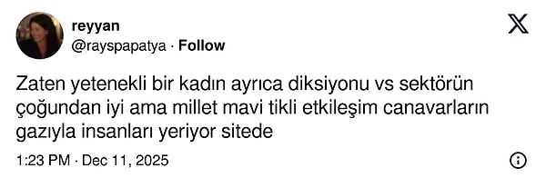 X’te dolaşan ve kısa müddette gündem olan görüntüde, Fahriye Evcen’in farklı projelerden, röportajlardan ve reklamlardan alınmış kısa kesitleri arka arda verilince oyuncunun yetenekleri takdir topladı.