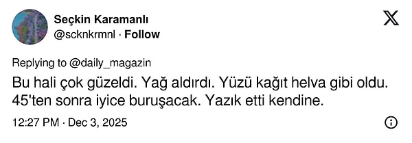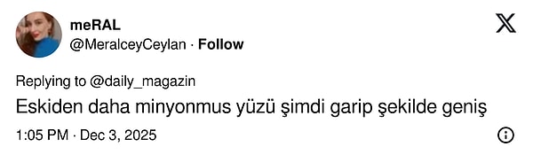Yaprak Dökümü dizisiyle yıldızı parlayan Fahriye Evcen’in eski imajları toplumsal medyada ortalığı karıştı. Sık sık makyajsız halini paylaşarak hakkında çıkan estetik savlarına yalanlama getiren ünlü oyuncu, bu sefer de geçmiş ve şimdiki halinin kıyaslanmasıyla tartışmanın merkezine oturdu. Toplumsal medyada kimi ‘Bariz estetik yaptırmış’ derken, kimi de ‘Hiç süreç yok’ yorumu yaptı.