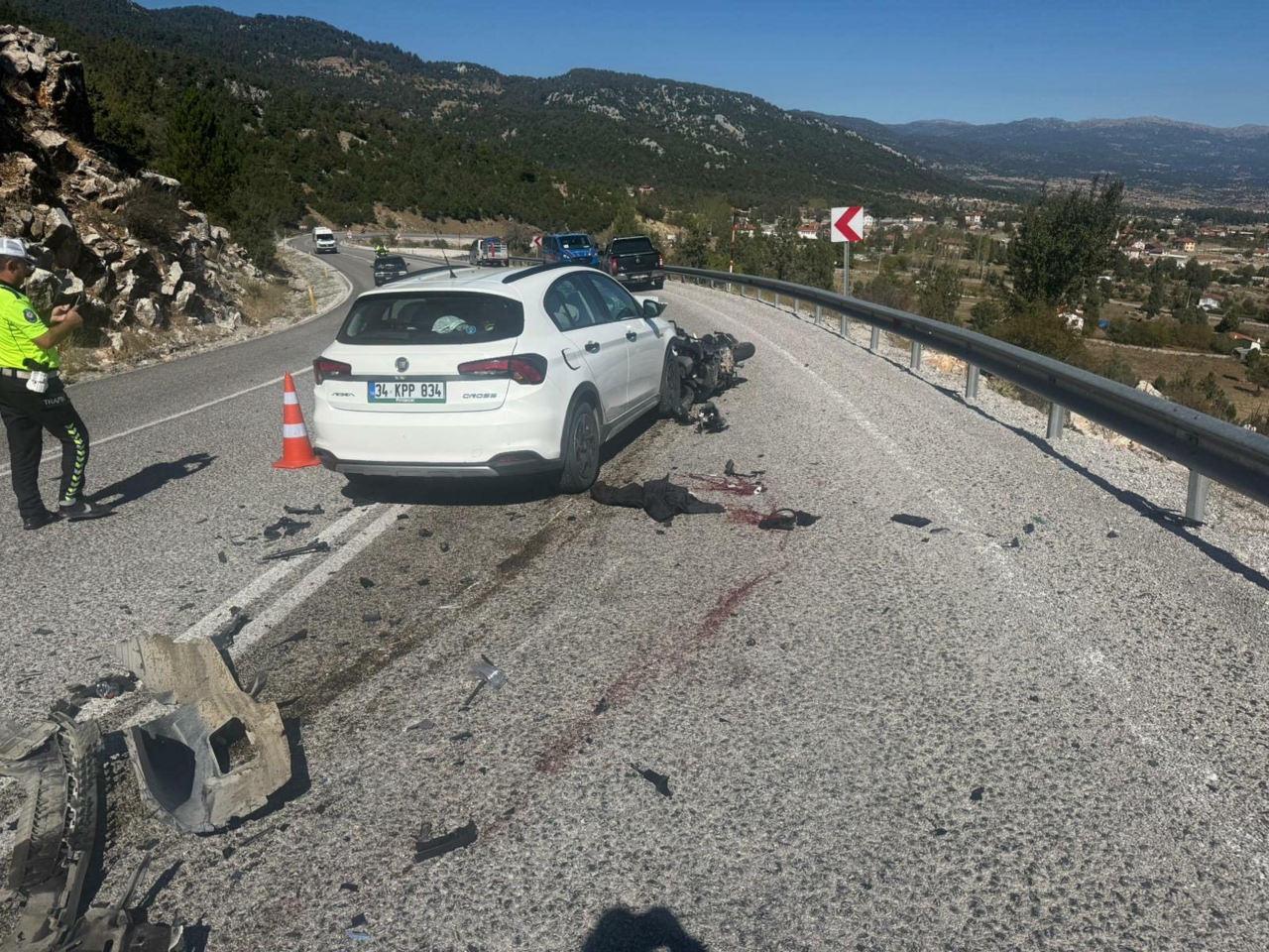 M.Y. (31) yönetimindeki 34 KPP 834 plakalı araba, Fethiye-Antalya kara yolu Karabel mevkisinde, Kasım Gürkan (34) idaresindeki 07 CAJ 274 plakalı motosikletle çarpıştı.
