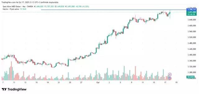 FED faizleri 25 baz puan indirdikten sonra piyasalarda hareketlilik görüldü. Ons altın faiz kararı öncesinde 3 bin 687 dolar civarında bulunuyordu kararın çabucak akabinde 3 bin 708 dolara yükselerek tüm vakitlerin rekorunu kırdı.
