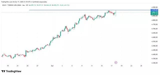 Gram altın, ons altında görülen üst istikametli hareketlenmelerin tesiriyle resmi sayılarda 4 bin 919 liraya kadar yükselerek rekor kırdı. Kapalıçarşı’da ise gram altın 5 bin 33 lirada bulunuyor.