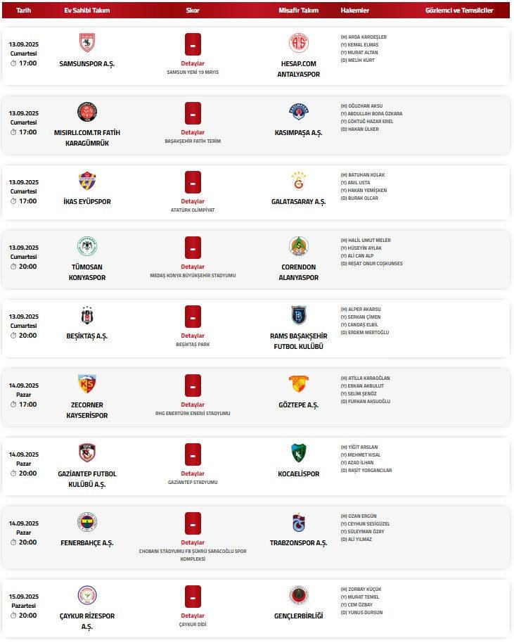 Haftanın başka maçlarında vazife yapacak hakemler ise şöyle: