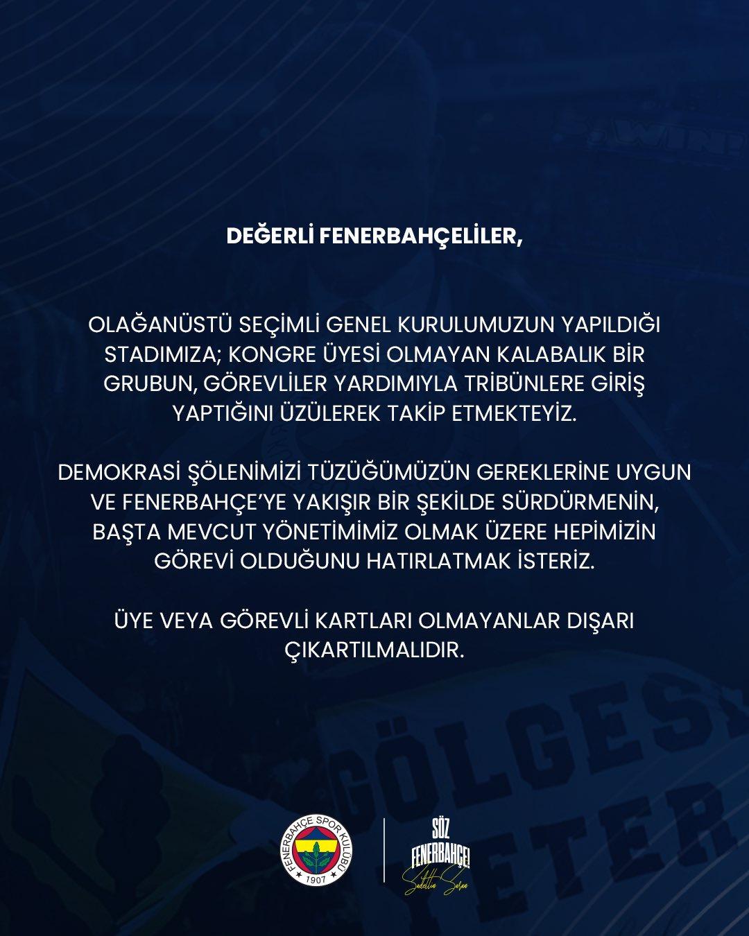 “Değerli Fenerbahçeliler,