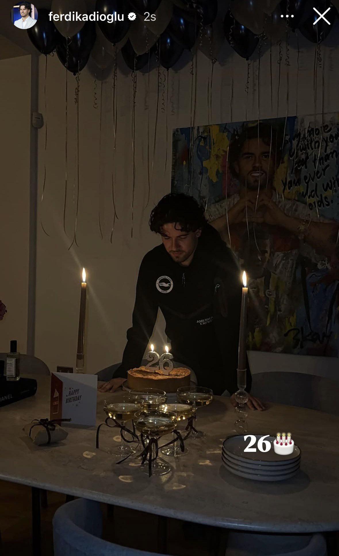 26 yaşına giren Ferdi Kadıoğlu’nun doğum günü için yaptığı paylaşımda bir tablo önünde mum üflediği görüldü.