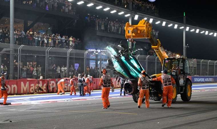 Formula 1 Singapur Grand Prix’sinin sıralama turlarında Aston Martin pilotu Lance Stroll, aracının kontrolünü kaybedip bariyerlere çarptı.