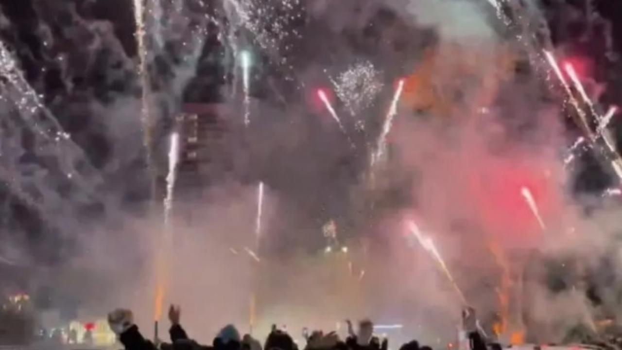 Gece geç saatlerde Liverpool’un konakladığı otelin önüne gelen bir küme taraftar, yüzlerce havai fişek patlatarak otelin etrafını adeta stadyuma çevirdi.