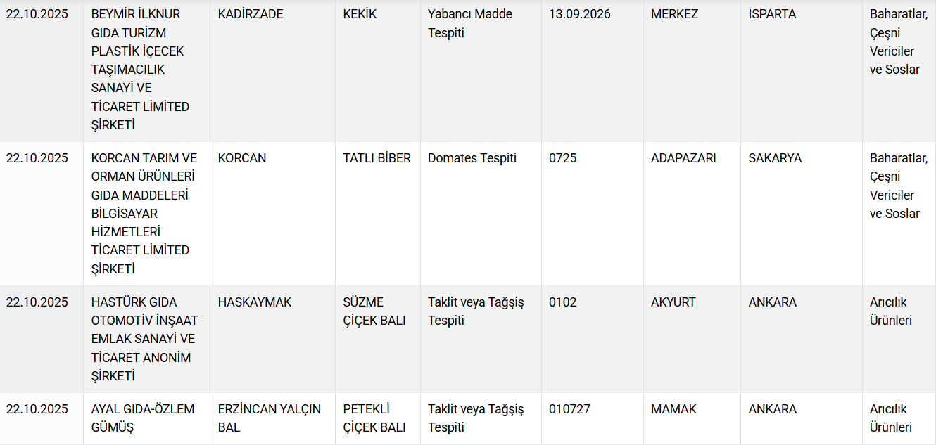 Vatandaşların sağlıklı besine erişmesi için Tarım ve Orman Bakanlığı yaptığı denetimler sonrası uygunsuz olan eserleri ifşa etmeye devam ediyor.
