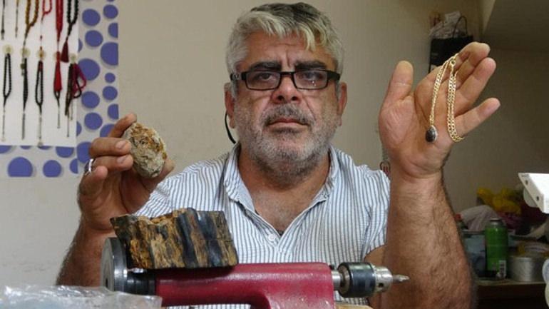Fosilleşmiş ağaç reçinesi olan kehribar, toprak altından çıkarıldıktan sonra kentin tek bedelli taş işlemecisi Bayram İpek’in ellerinde kolye, yüzük, küpe, bileklik ve tespihe dönüşüyor.