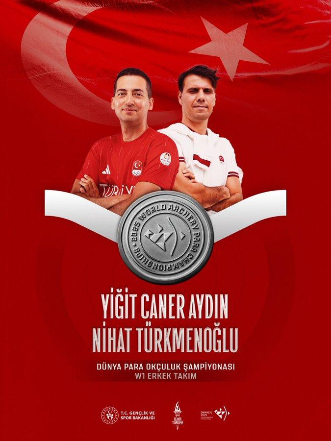 Güney Kore’de düzenlenen Dünya Para Okçuluk Şampiyonası’nda Türkiye’yi temsil eden Nihat Türkmenoğlu ve Yiğit Caner Aydın, W1 erkek grup kategorisinde dünya ikincisi oldu.