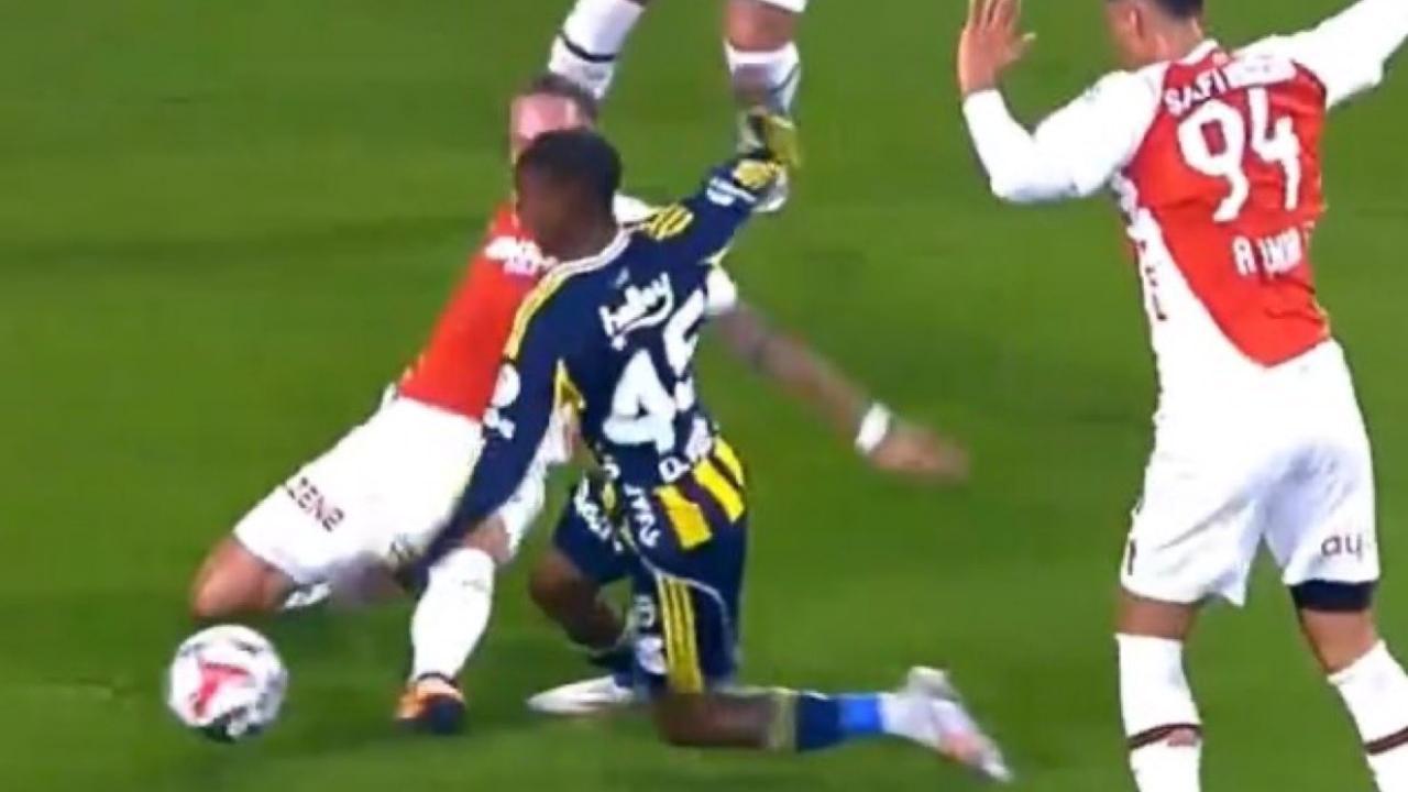 Hakem: “Geldim, Erkan abi gösterir misin bana? Tamam, gördüm. Erkan abi oyuncu düşerken denetimsiz bir biçimde net temas var. 29 numara değil mi?”