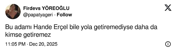 Ayrılıkla ilgili en çok konuşulan tez ise gazeteci Müge Dağıstanlı’dan gelmişti. Dağıstanlı’ya nazaran Hande Erçel, geçtiğimiz yazın başında Hakan Sabancı ile itimat konusu yüzünden bir tartışma yaşamış, bu durum hoş oyuncuyu derinden kırmıştı. Teze nazaran Erçel, alakaya devam ettikçe daha çok üzüleceğini düşünerek, bu süreci sırf kardeşi Gamze ile paylaşmış ve sonunda bitirme kararı almıştı. Hakan Sabancı’nın barışmak için uğraş gösterdiği fakat başarılı olamadığı da konuşulmuştu.