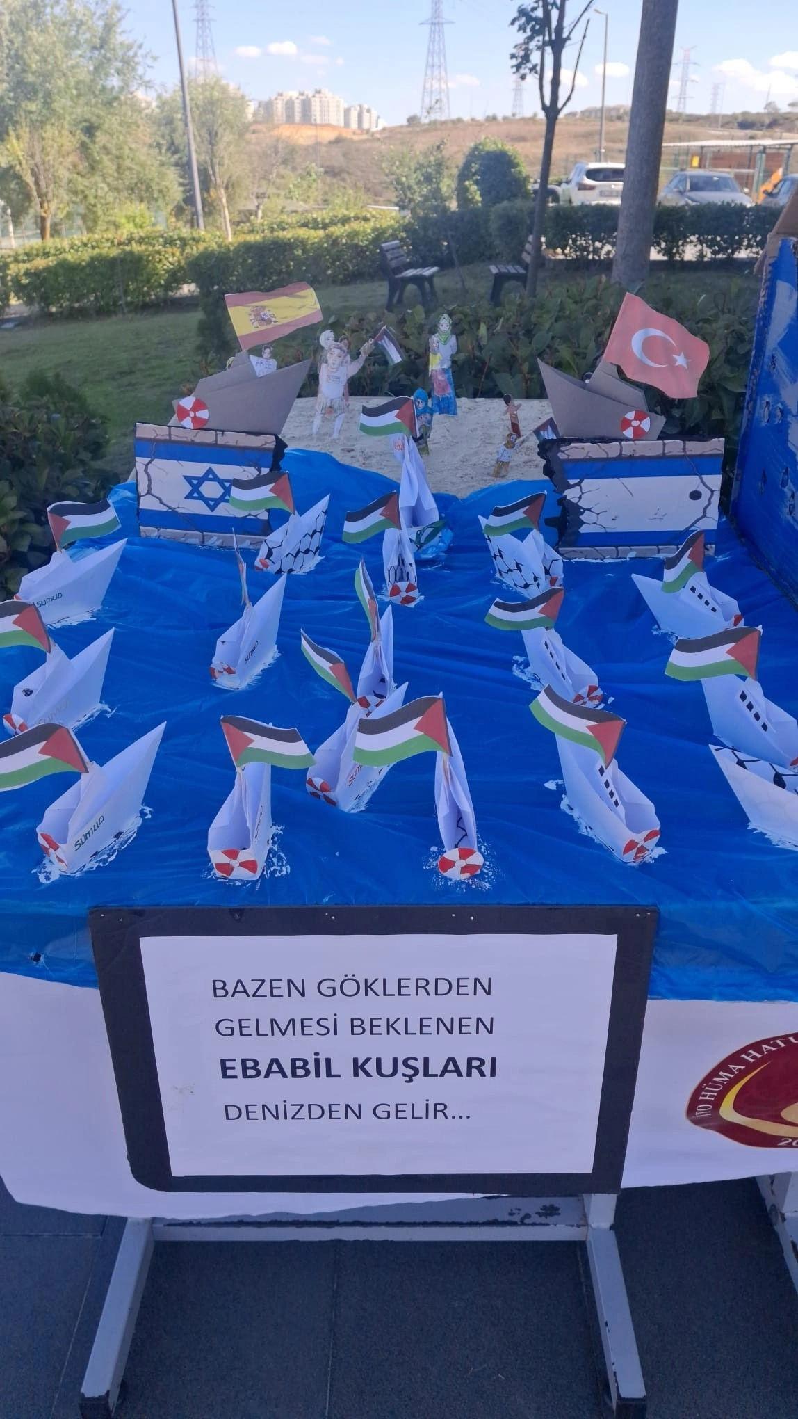 Program alanında Hüma Hatun İmam Hatip Ortaokulu öğrencilerinin yapmış oldukları Gazze Maketi dikkatleri çekti. Yıkılan meskenler, bombalanan hastaneler, vurulan ambulanslar, yakılan çadır kamplar ve harabeye çevrilen okullarla Gazze’nin Amerika takviyeli Siyonist İsrail tarafından nasıl dehşetli bir taarruza maruz kaldığı gözler önüne serildi.