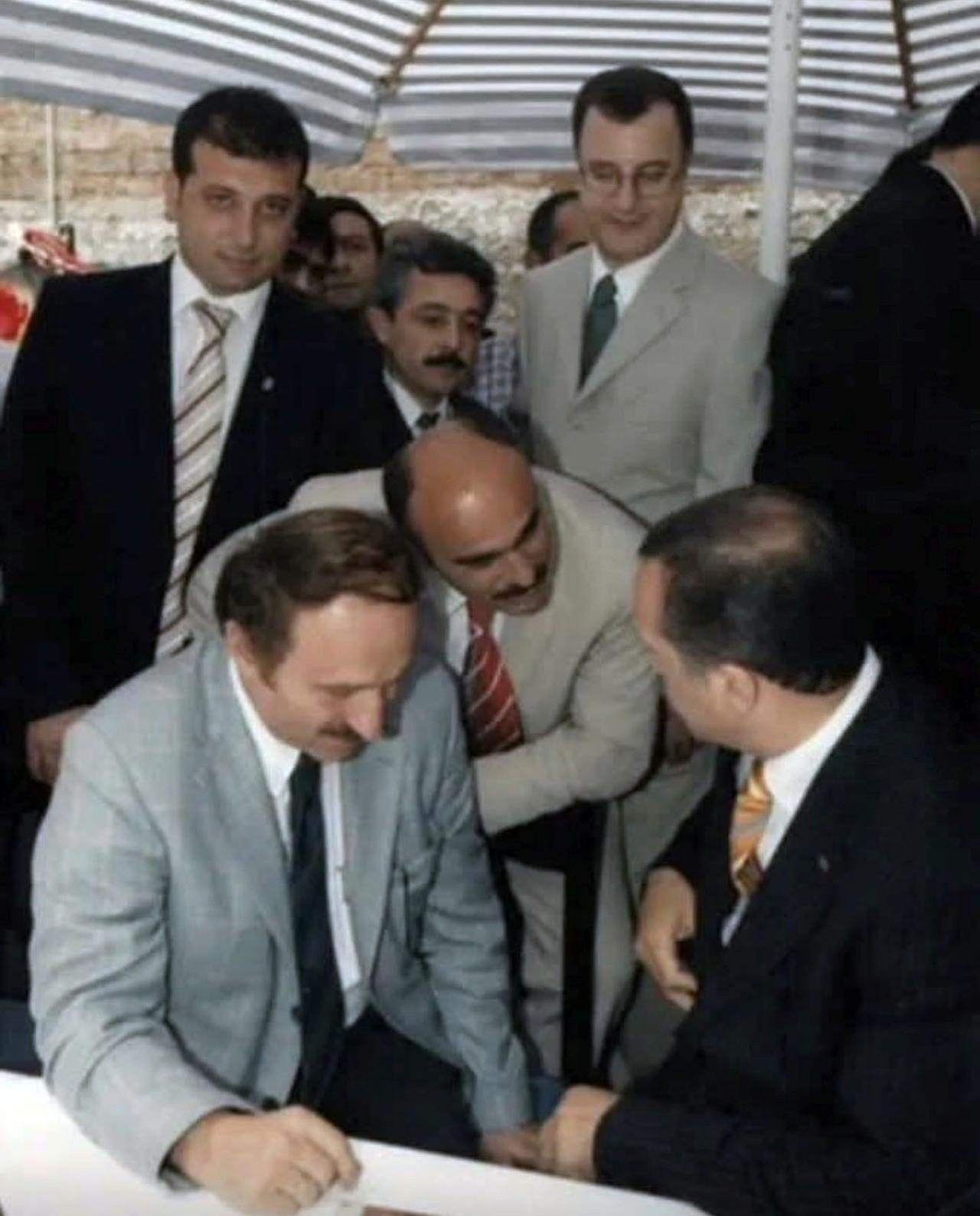 Ekrem İmamoğlu, ANAP’tan AK PARTİ’ye geçmeye uğraşırken referansı hemşehrisi eski Bakan Faruk Özak’tı. (Önde oturam) İmamoğlu, AK PARTİ’de siyaset yapabilmek için Erdoğan’la görüşmeye çalışıyordu. Hatta o devir AK PARTİ’ye 7 bin dolar da bağış yaptı.