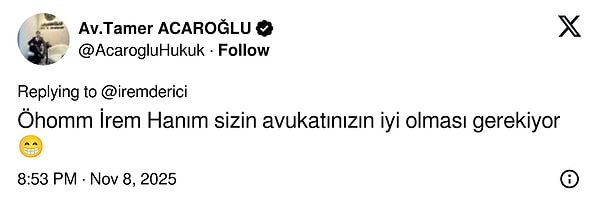 Fakat tweet İrem Derici’nin aykırı bir anına denk gelmiş olacak ki, kendisinden beklenmedik bir reaksiyon geldi.