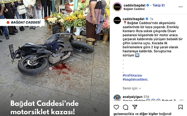 Helvacıoğlu ve ailesinin geçirdiği kazanın yaklaşık 1 saat evvel @caddeibagdat hesabında paylaşılan bu kaza olduğu söyleniyor.