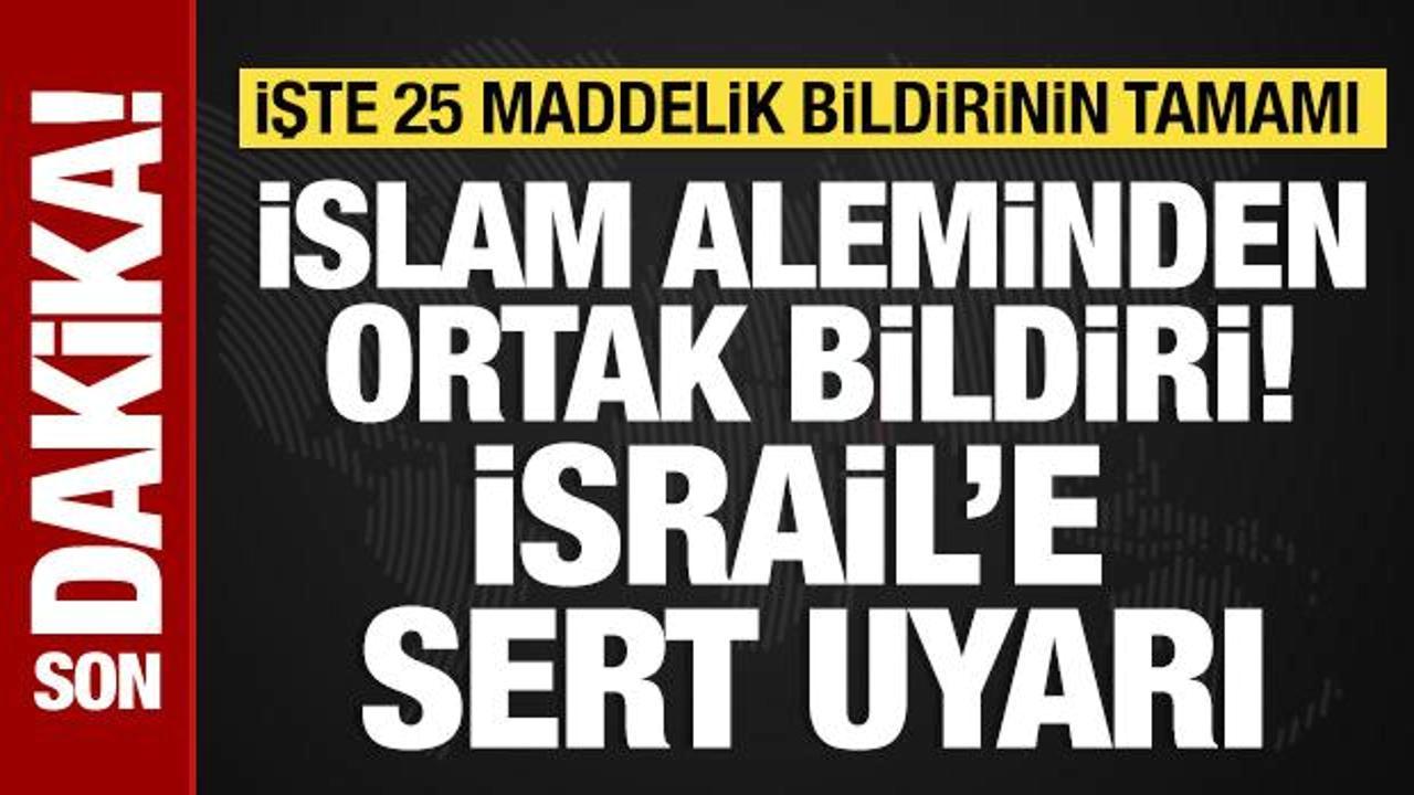 İslam aleminden ortak bildiri! İsrail’e sert uyarı: İşte 25 maddelik bildirinin tamamı