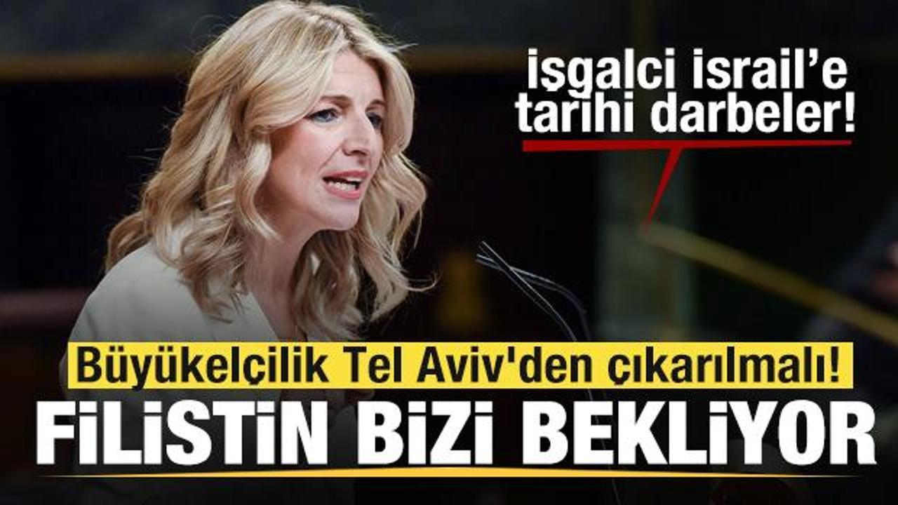 Diaz, bildirisinde “İspanya Büyükelçiliği, Tel Aviv’den çıkarılmalı. Filistin, bizi bekliyor.” tabirlerini kullandı.