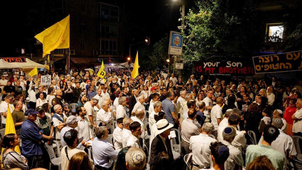 Gazze’deki esirler meskenine dönen kadar “bayram yapmayacaklarını” vurgulayan yüzlerce İsrailli protestocu, Binyamin Netanyahu’dan Gazze’de ateşkes ve esir takası muahedesine varmasını istedi.