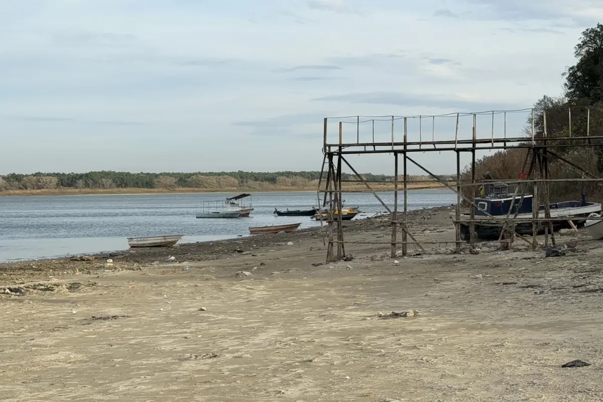 Görüntülerde, karaya oturan tekneler, toprak üzerinde kalan iskele ve suyun kıyıdan metrelerce uzaklaştığı net şekilde görüldü.