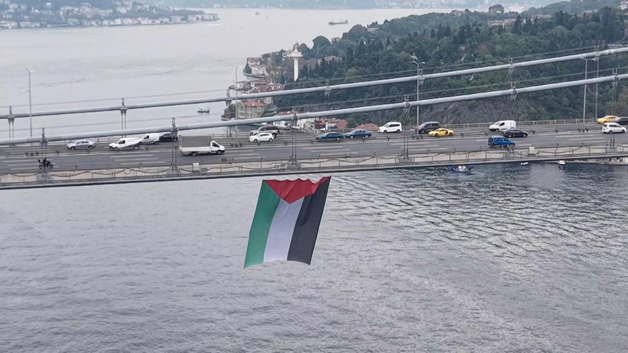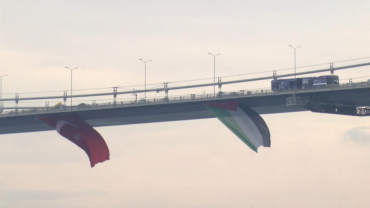 İstanbul Boğazı’ndaki köprülere Filistin’e destek için bayrak asıldı