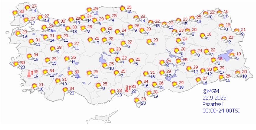 Meteoroloji Genel Müdürlüğü tarafından yapılan kestirimlere nazaran: Ülkemiz genelinde yağış beklenmiyor. Yurdumuzun kuzey ve doğu bölümlerinin kesimli, yer yer çok bulutlu, öbür yerlerin az bulutlu ve açık geçeceği kestirim ediliyor.