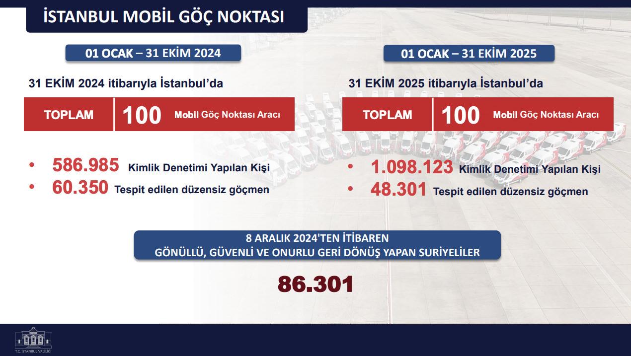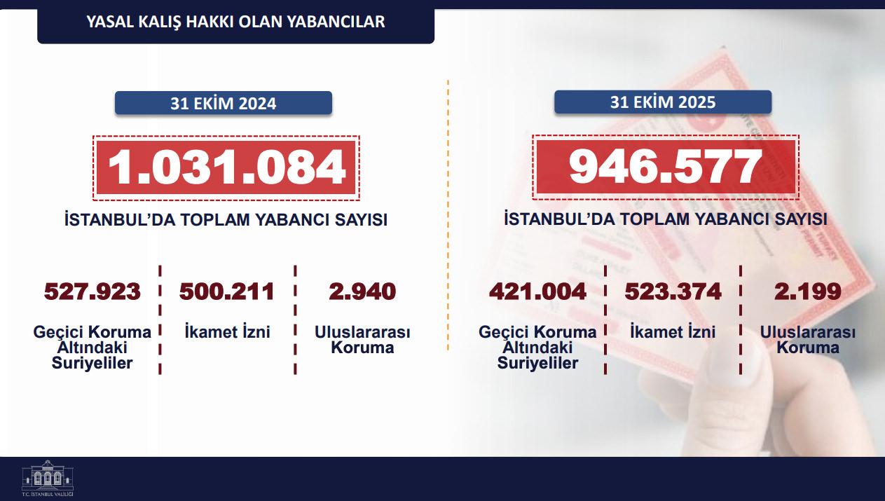 48 bin 301 sistemsiz göçmen tespit edildi. İstanbul’daki toplam yabancı sayısı 946 bin 577 olarak açıklandı.