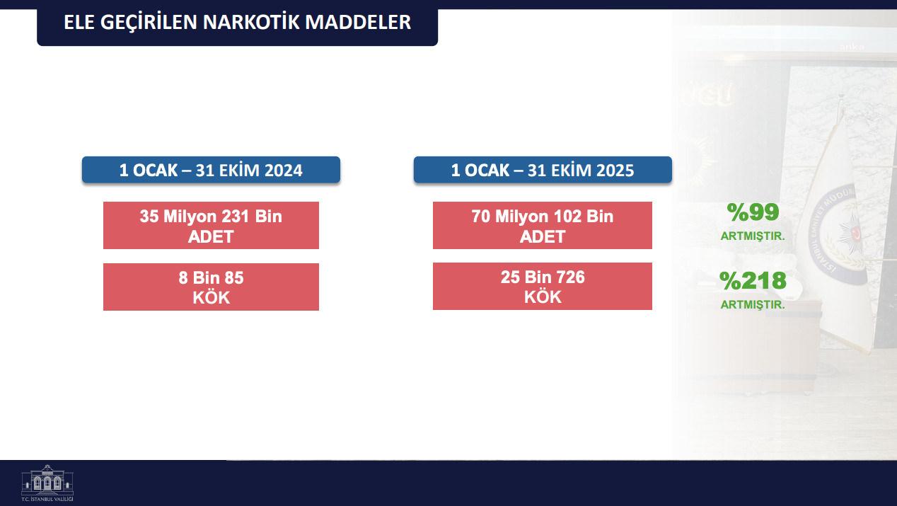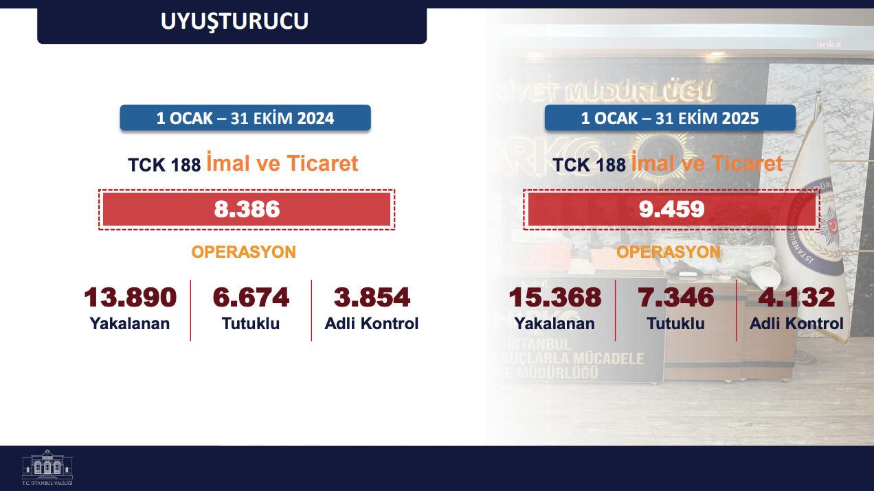 Uyuşturucu operasyonları ve tutukluların sayısı arttı. Ele geçirilen kenevir adedi yüzde 99, kök olarak yüzde 218 arttı.