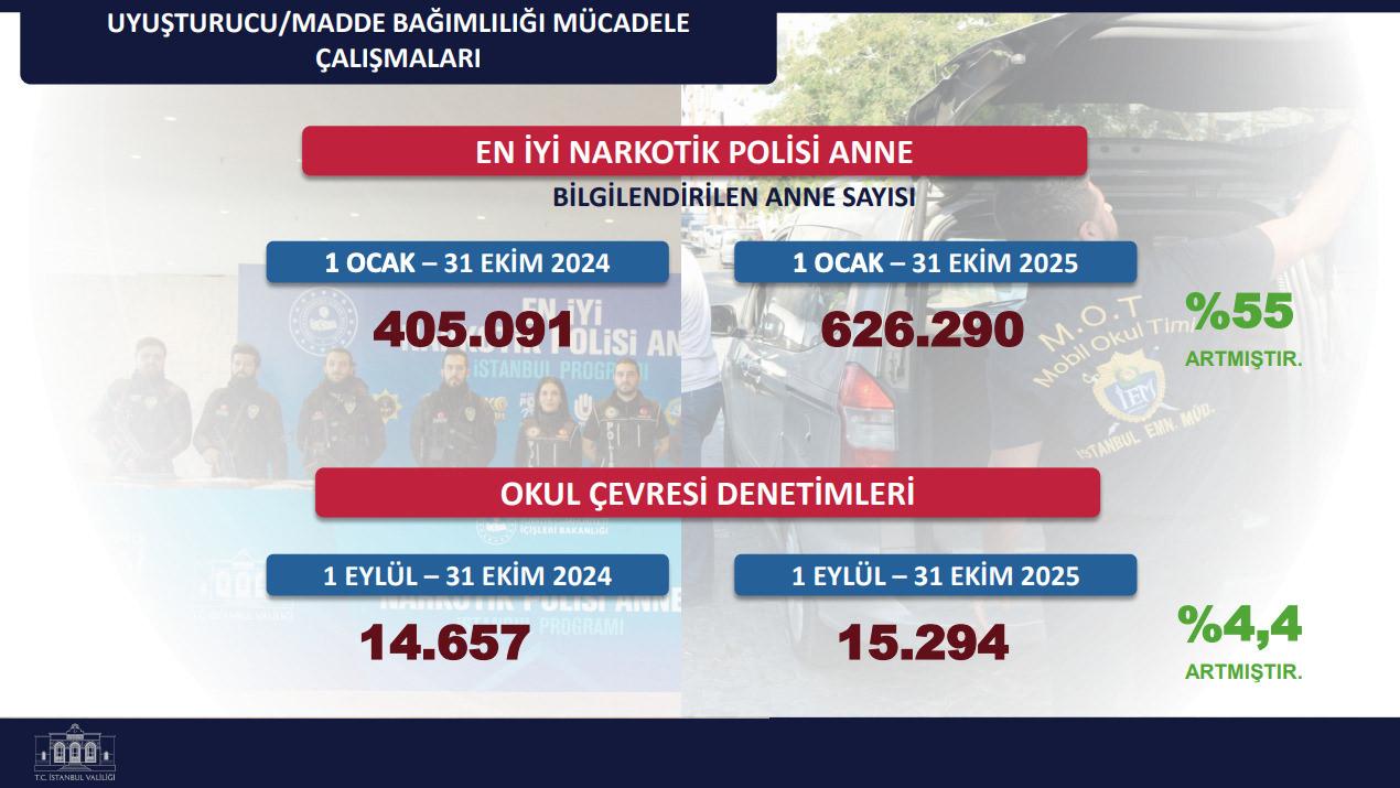 “En Yeterli Narkotik Polisi: Anne” projesi kapsamında bilgilendirilen anne sayısı yüzde 55 artarak 626 bin 290’a çıktı.