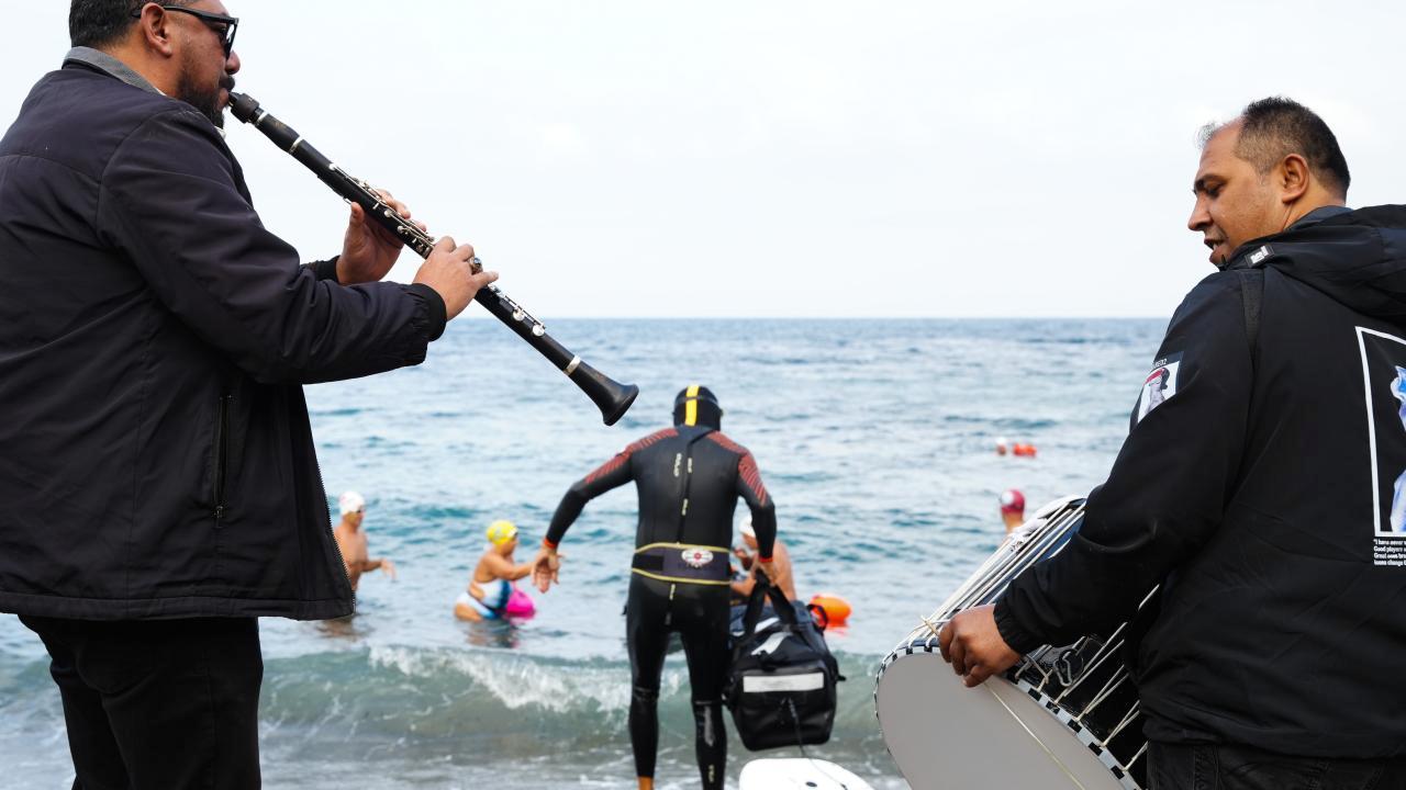 Yüzücüler, İsveçli Tammi’nin Türkiye’den ayrılması münasebetiyle limanda davul zurna eşliğinde uğurlama aktifliği düzenledi.
