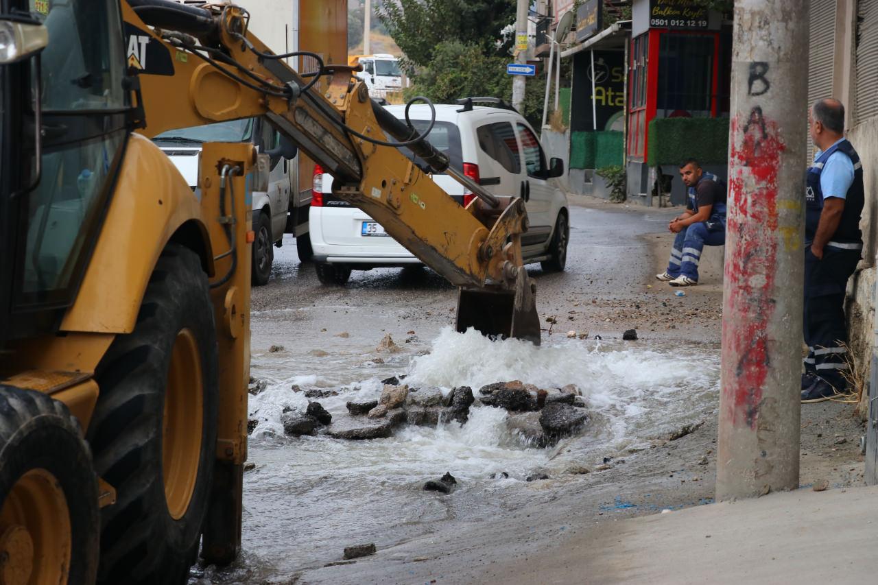 Mahallelinin ihbarı üzerine bölgeye gelen İzmir Su ve Kanalizasyon İdaresi Genel Müdürlüğü takımları tamirat çalışmaları başlattı.