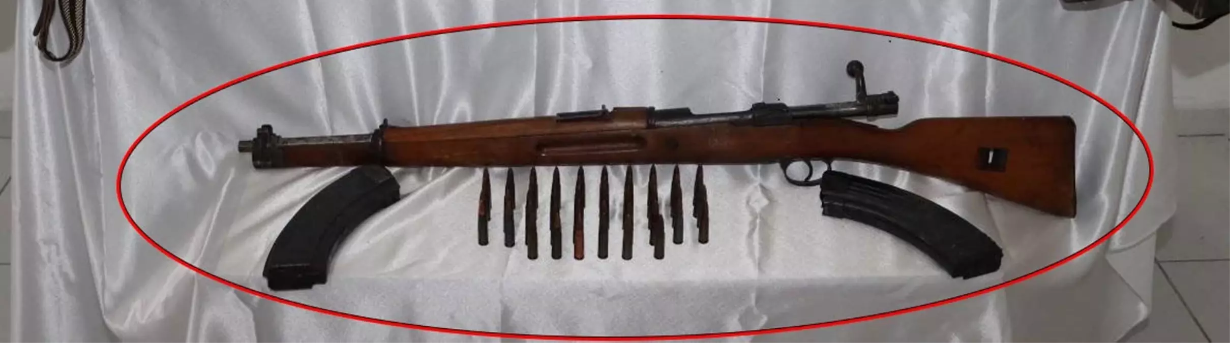 Operasyon kapsamında yapılan aramalarda toplamda çok sayıda silah ve mühimmat ele geçirildi. Elde edilenler arasında, 1’inci Dünya Savaşı dönemine ait Alman yapımı Mauser marka tüfek dikkat çekti. Bunun yanı sıra, 5 ruhsatsız tabanca, 4 tabanca şarjörü, 172 tabanca mermisi, 8 ruhsatsız av tüfeği, 14 av tüfeği kartuşu, 1 av tüfeği şarjörü, 2 AK-47 Kalaşnikof şarjörü, 46 adet 7,62 mm fişek, 1 kurusıkı tabanca ve 5 kurusıkı tabanca mermisi ele geçirildi.