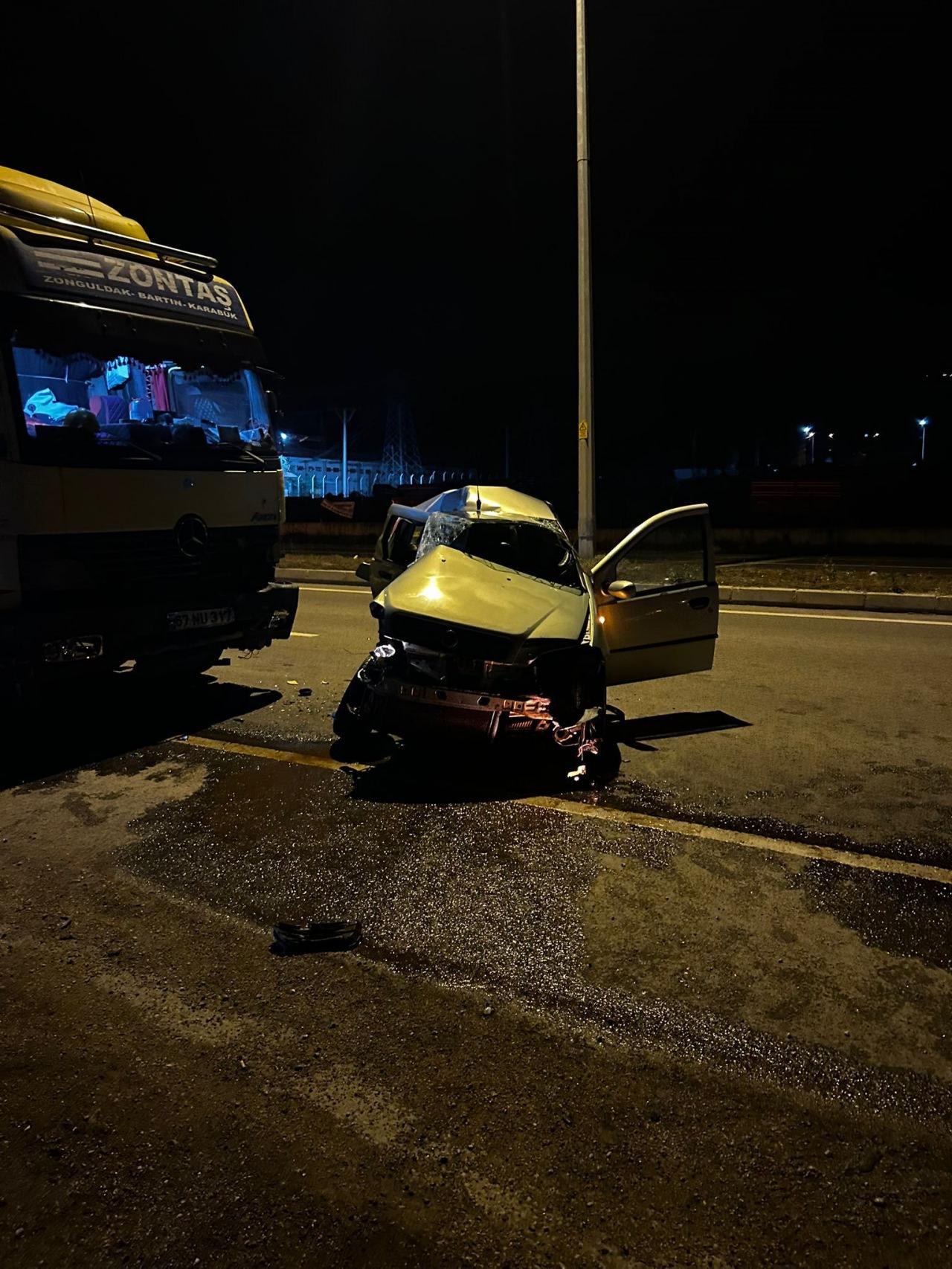 Kavşaktan dönüş yapan Mesut Ekel yönetimindeki 14 EP 645 plakalı arabaya, şoförünün ismi öğrenilemeyen 67 NU 317 plakalı kamyon çarptı. Araba metrelerce sürüklenirken, etraftakilerin ihbarı üzerine kaza yerine sıhhat, polis ve itfaiye takımları sevk edildi. Yaralanan araba şoförü Ekel, ambulansla İzzet Baysal Devlet Hastanesi Köroğlu Ünitesi’ne kaldırıldı.