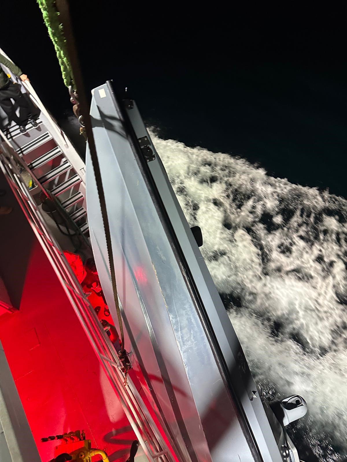 Hamsi avcılığı için Yoroz Balıkçı Barınağı’ndan denize açıldıklarını belirten Bozok, “Akçakale mevki açıklarında teknemizin radarına bir cisim 800 metre uzaklıktan görüldü. O anlar fırtına biraz fecî ancak görünce küçük balıkçı teknesi olabileceğini düşünerek yanına yaklaştık. Geminin üzerine alalım dedik. Vinçle kaldırınca baktık ki askeri bir bota benziyor. Daha sonra Kıyı Güvenlik takımlarına haber vererek tekneyi gemimizin üzerine alarak Yoroz Balıkçı Barınağı’na getirdik. Kıyı güvenlik takımlarına teslim ettik” dedi.