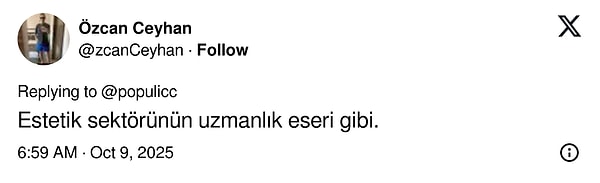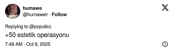 Dudak dolgusu: Üst ve alt dudak daha dolgun ve besbelli. Çene sınırı sertleştirme (jawline kontur): Daha sıkı, V halinde bir yüz sınırı. Göz etrafı botoksu: Kaz ayakları yok denecek kadar az, gözler daha açık ve canlı. Yüz germe (facelift): Yanaklar üstte, sarkma izleri neredeyse sıfır. Kaş kaldırma: Göz kapakları daha açık, kaşlar genç bir tabirle yükselmiş. Dudak üstü çizgilerinin silinmesi: Bu genelde lazer yahut dolgu ile yapılıyor.